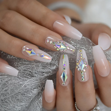 "Natural French Stiletto" Style Long Nails "Natural Glam"